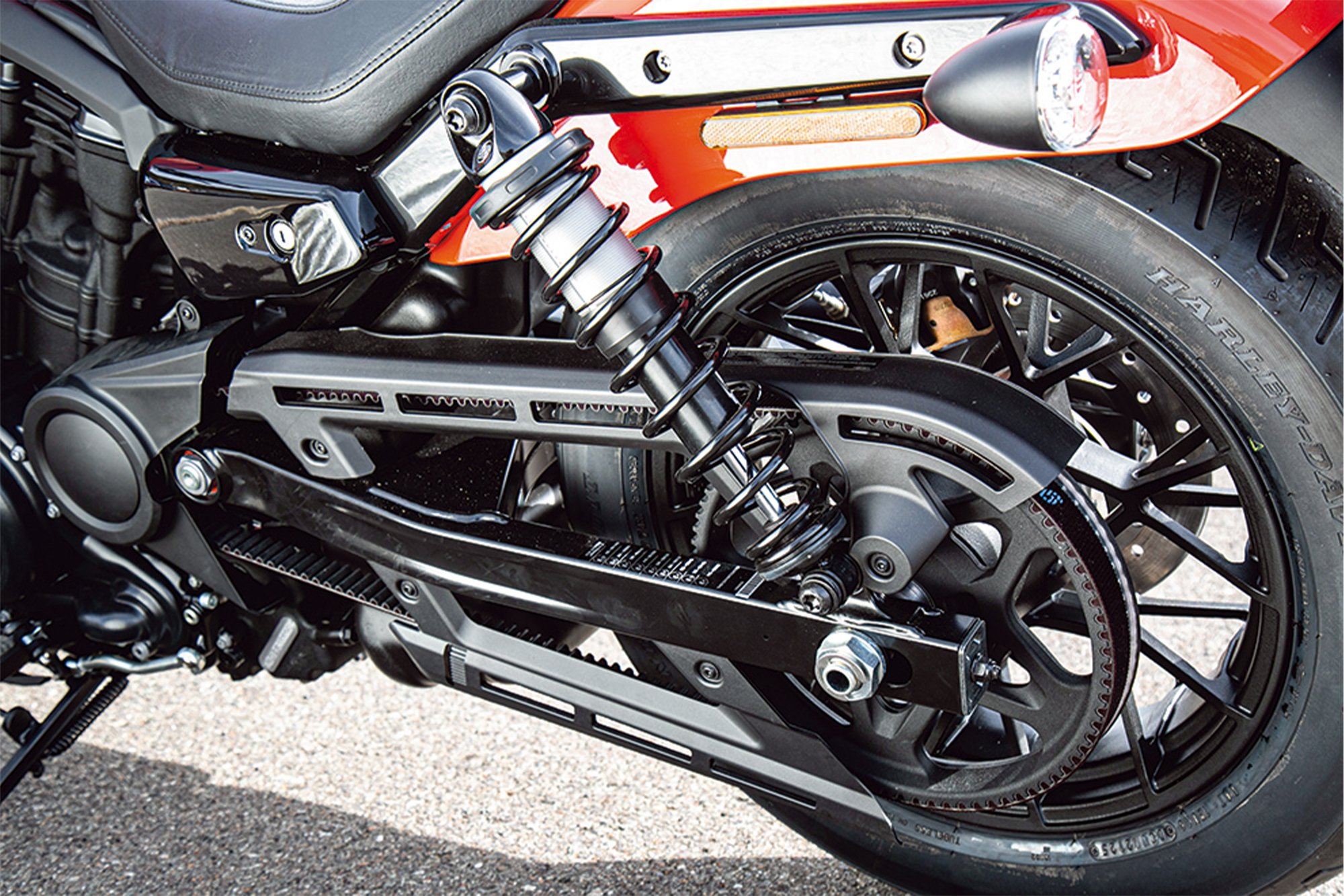 2026年モデルのトピックスはフラットトラックレーサーとして活躍した往年の名車XR750をオマージュしたこのブラッドオレンジカラーがラインナップされたこと。まさにハーレーダビットソンのレガシーを体現した1台なのです。
