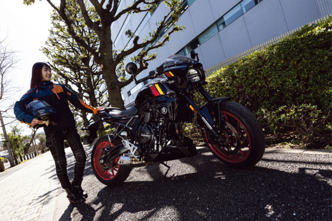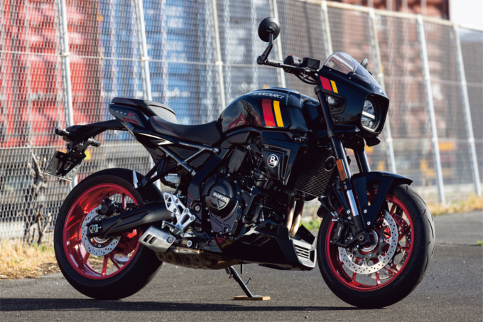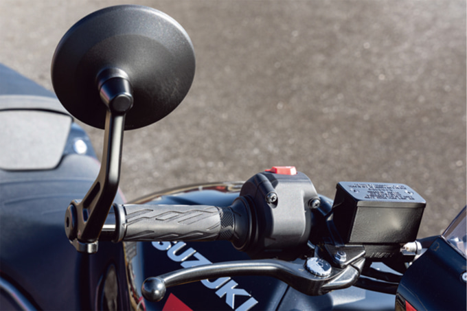 - バーエンドミラーやステッチ入りシートといったディテールも秀逸。意匠性だけでなく視認性や快適性まで配慮され、完成度の高さを物語ります。
