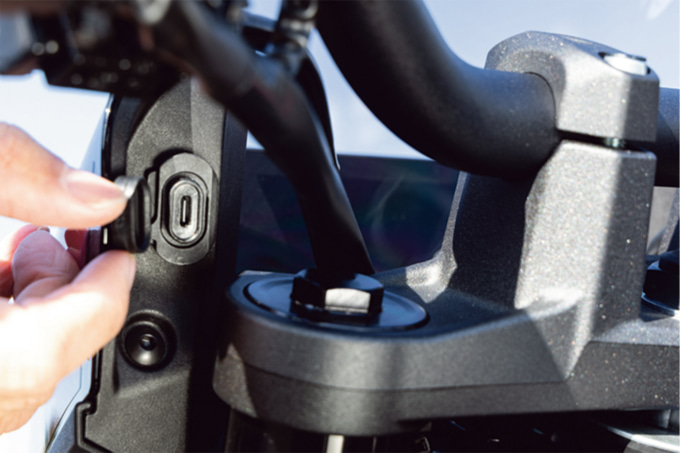 あと、装備面が充実していることも魅力的だと思いました。カラーTFTメーターは視認性が高く、情報もわかりやすく表示されます。パッと一目見ただけで、速度やエンジン回転数、ガソリン残量に設定中の走行モードなどを把握できて便利です。さらに双方向クイックシフターによりクラッチ操作なしでスムーズにシフトアップ・ダウンも可能で、ギヤチェンジ時のギクシャク感も低減されます。ビキニカウルは胸元の風圧を軽減してくれ、一般的なネイキッドモデルに比べて長時間乗っていても疲れにくい印象です。バーエンドミラーは、実際に乗ってみると違和感がほぼなく、むしろメーターまわりをチェックする時にも視界の端に入りやすく、視線移動が少なくすむのはうれしいポイントでした。