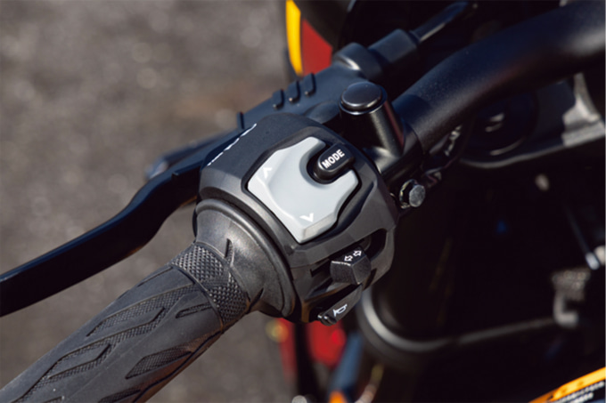 ライディングモードにも触れておきましょう。ちなみにここまでのインプレッションはAモード走行でのものになります。モードは3種類用意されていて、Aモードはもっともスポーティでスロットル操作に俊敏に反応してくれて加速と減速のメリハリがわかりやすかったです。Cモードは全体的にマイルドで加減速時に上体がもっていかれることが少なく、ライダーへの負担が少ないイメージでした。街乗りやツーリングでも疲れにくい印象です。Bモードはその中間でいいとこどりな印象。個人的には、普段はBモードで、ワインディングでもう少し走りを楽しみたい時はAモード、まったり街乗りや長距離ツーリングを楽しみたい時はCモード、なんていう使い分けが楽しそうだなと思いました。