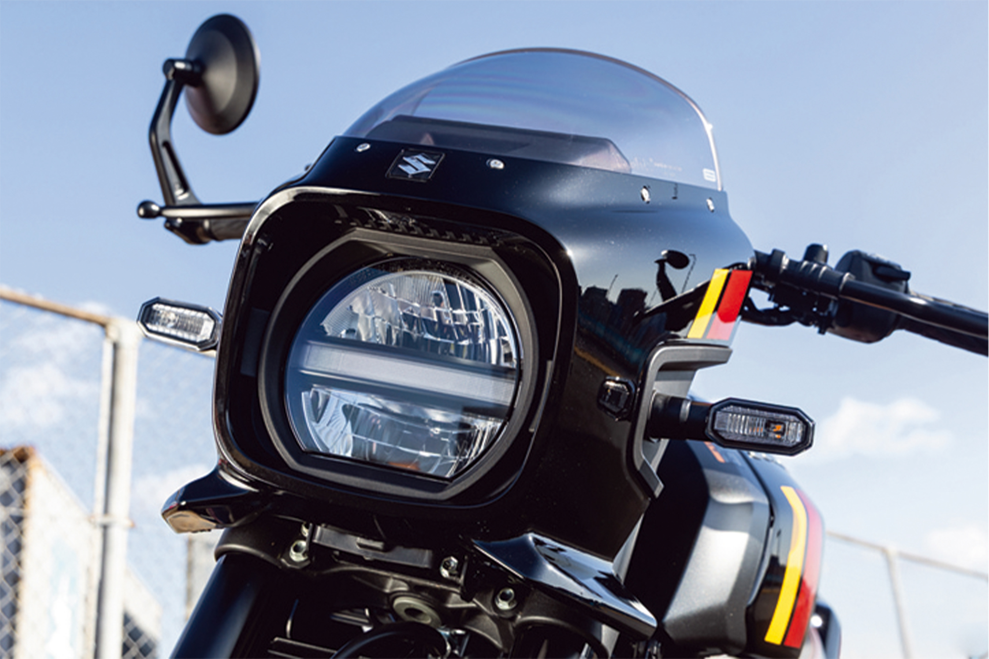 - バーエンドミラーやステッチ入りシートといったディテールも秀逸。意匠性だけでなく視認性や快適性まで配慮され、完成度の高さを物語ります。