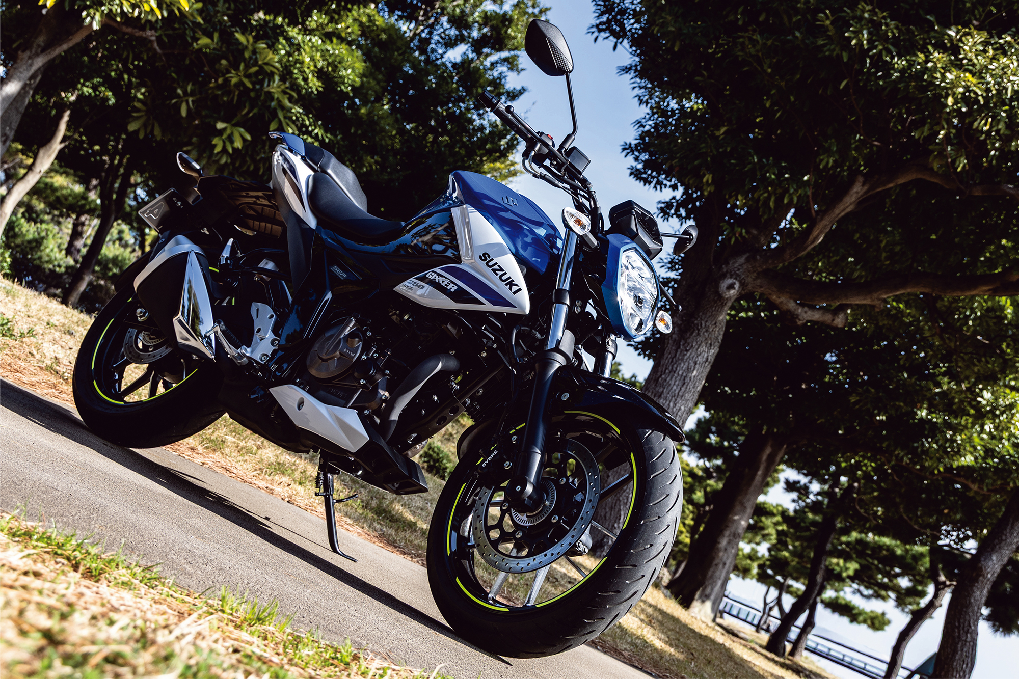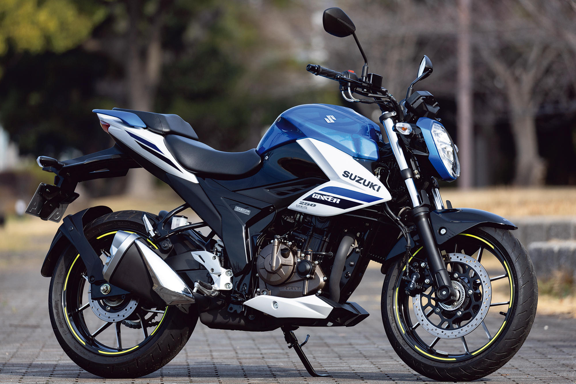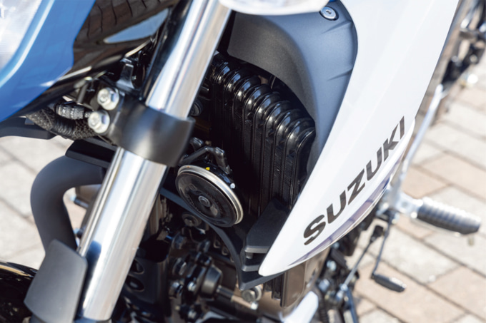 時代に合わせて進化したスズキ伝統の冷却方式“油冷”を採用したエンジンを搭載する軽二輪(250㏄クラス)ネイキッドスポーツ。扱いやすさや実用性まで含めユーザーの要求に向き合ったパフォーマンスが目を引くモデルなのです