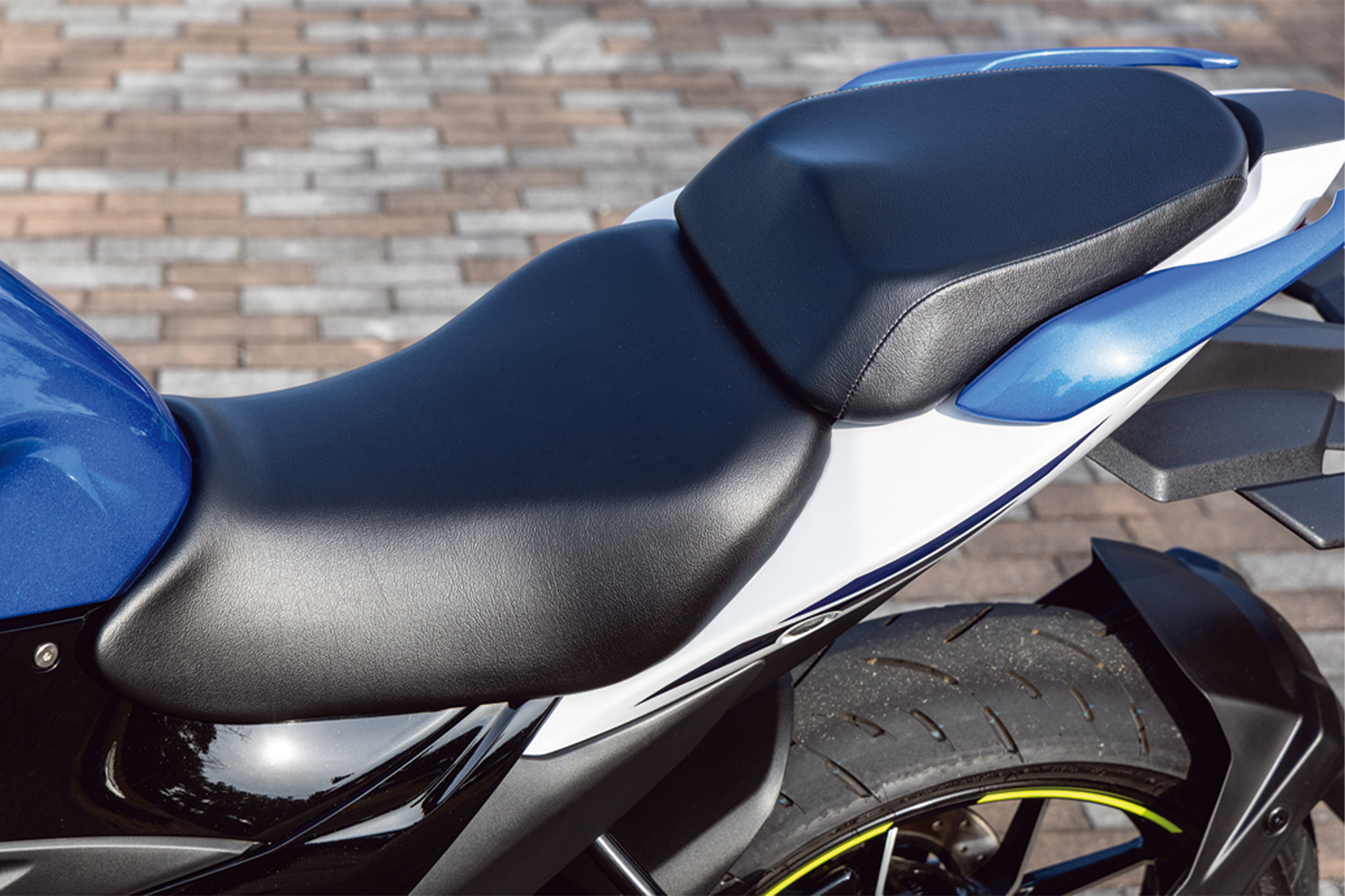 使い勝手の面でも配慮が行き届いています。十分な座面が確保されたうえに前側が盛り上がったタンデムシートは、タンデマーが座りやすいだけじゃなくシートバッグなど荷物も安定させやすい。また、グラブバーがヘルメットホルダーとして活用でき、サイドスタンドも体格差に関係なく出し入れしやすい形状など、細やかな気づかいが感じられます。
