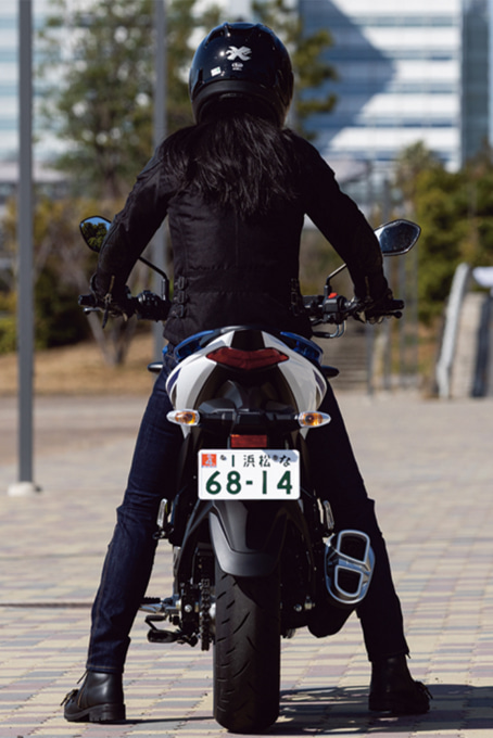 - 軽量な車体と自然なアップライトポジションで、取りまわしもラクラク。さらにニーグリップしやすいタンク形状が安定感を高め、しっかりサポート。