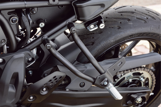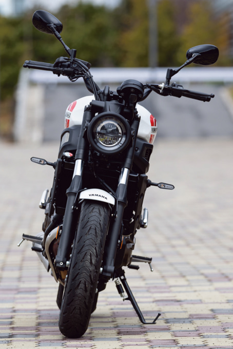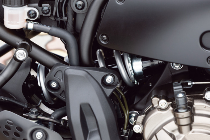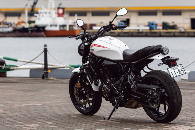 そんなレトロを感じさせる見た目とはうらはらに、機能面は最新のパフォーマンスが与えられています。バイクの心臓とも言えるエンジンは、ライダーのスロットル操作に対し、リニアなトルクを創出することを追い求めた“クロスプレーンコンセプト”に基づいた270度位相クランクの688㎤水冷4ストロークDOHC4バルブ並列2気筒を採用。270度位相クランクは、乗り手が鼓動感を楽しめるのが一つの特徴となっています。スポーツネイキッドMT-07に採用されているモノをベースとしていて、そのことからもどんなパフォーマンスかはうかがい知ることができるでしょう。エンジンとともに速度をコントロールするブレーキは、対向4ポットキャリパーをダブルで採用するフロントとリヤシングルのディスクブレーキという十分な組み合わせです。
