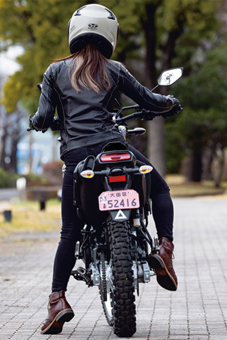 - 日常使いのオンロードからオフロードまで幅広いフィールドに対応し、スリムで軽快な車体は、エントリーユーザーにも扱いやすくなっています。