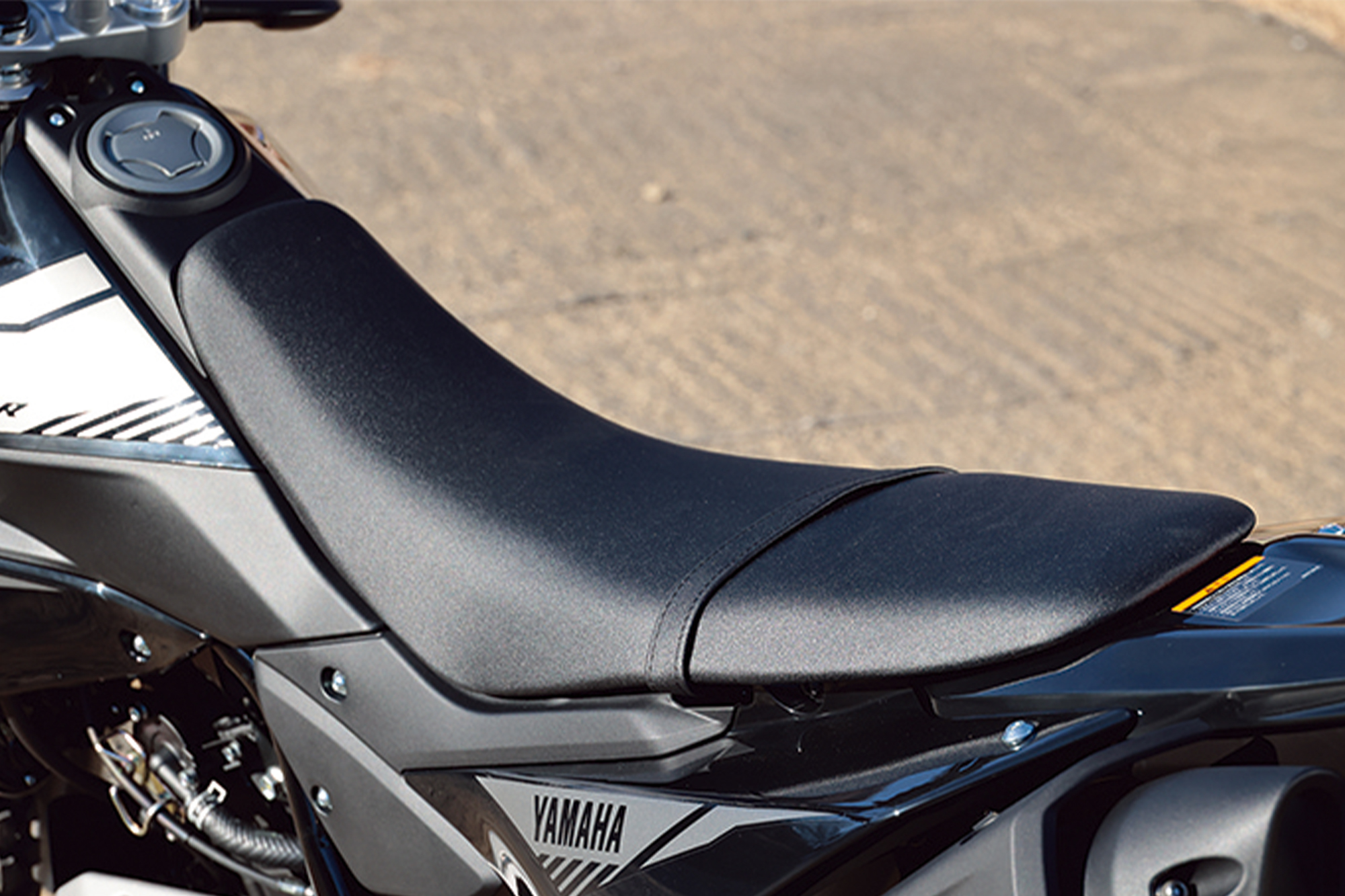 ここからはWR125Rならではの特徴に目を向けていきましょう。まずは最高出力11kW(15㎰)を生み出す水冷124㎤エンジン。エンジンの回転数によって稼働するバルブの数が変わるVVA(VariableValve Actuation:可変バルブ)を用いることで、低中速域のトルク感と高回転域の伸び感をバランスよく最大限に発揮できるようにしています。また、オフロード走行に求められる低中速トルクを確保するために大容量のエアクリーナーボックスも採用されています。そのボックスに装着されるエアクリーナーは、サイドカバーを外すだけで着脱ができるようになっていて、その点からもオフロード走行をしっかりと意識しているモデルだということがわかります。