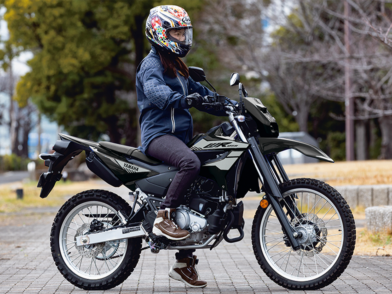 今年発売となったばかりの原付二種(125㏄未満)本格派オフロードモデルです。オフロードの走破性が高いだけでなく、軽量な車体とアップライトなライディングポジションによって街中での使い勝手もいい車両なのです