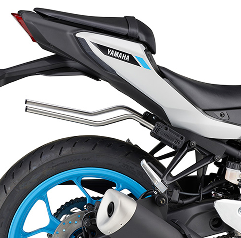 ワイズギアをはじめとするサイドバッグを装着する際、バッグとリヤタイヤが接触しないように取り付けるアイテム。バッグを装着しないときは、サポートバーを簡単に取り外せるぞ。MT-25&03にも適合する