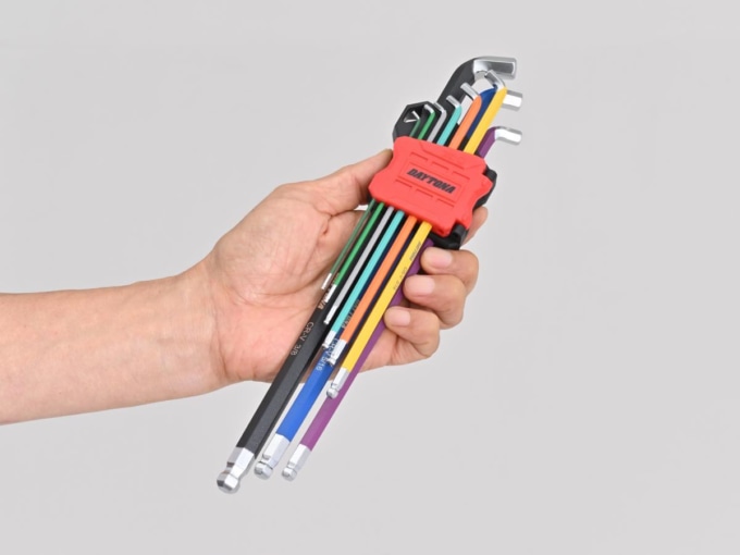 持ち運びに便利な折り畳み式や、握りやすくしっかり力をかけられる樹脂製グリップ付きのT型、サイズ別に色分けされたL型レンチセットなどがそろい、用途やスタイルに合わせて選べるのが魅力だ。