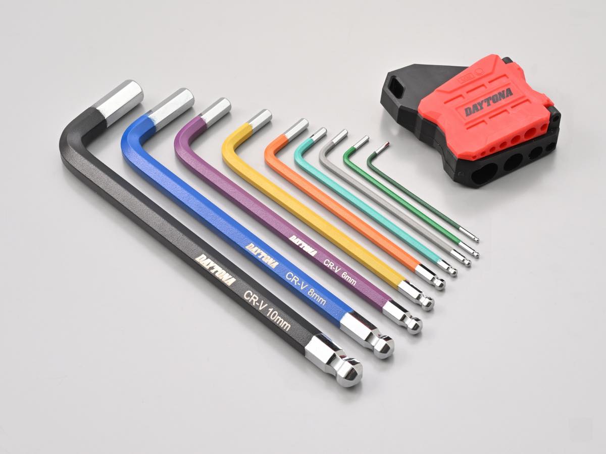 愛車のメンテナンスをするにあたって絶対にそろえるべき工具の一つに六角レンチ(ヘキサレンチ)がある。デイトナでは“使いやすさ”や“携帯性”をしっかりと考慮に入れた六角レンチを工具シリーズのラインナップに加えたので、それらをここでは紹介する。