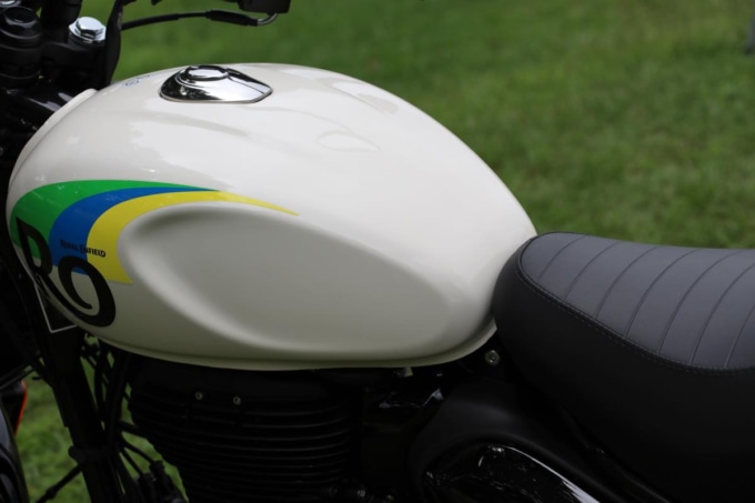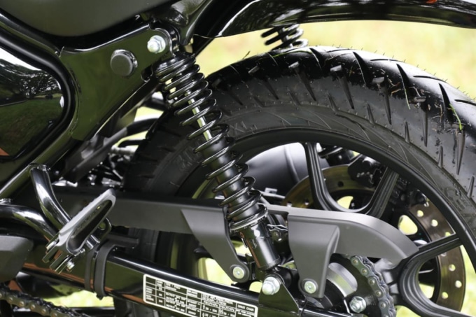 ●全長×全幅×全高:2,100×800×1,055(㎜)●軸間距離:ー●シート高:790㎜●車両重量:181kg●エンジン種類・排気量:空冷4ストロークOHC2バルブ単気筒・349㎤●最高出力:14.9kW(20.2㎰)/6,100rpm●最大トルク:27N・m(2.7㎏f・m)/4,000rpm●燃料タンク容量:13L ●燃費(WMTC):ー●タイヤサイズ:110/70-17・R=140/70-17●価格:59万9,500〜60万9,400円