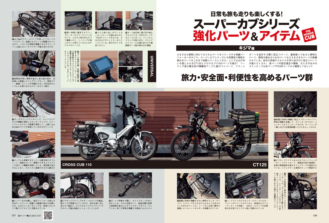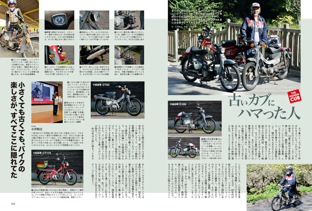 1958年に誕生した「スーパーカブ」は、世界生産累計1億台というとんでもない記録をもつ、ホンダが世界に誇るモーターサイクルの金字塔。「ビジネスバイク」とも呼ばれ、とりわけ趣味性が強いモーターサイクルとはかけ離れた存在のように思えますが、1958年の登場当初のスタイリングをいまも踏襲したルックス、そして誰もが気軽に運転できるイージーな操縦性から世界中に愛好家が存在しています。現在はバリエーションモデルも豊富で、「CT125ハンターカブ」、「クロスカブ」の大ヒットも記憶に新しいところでしょう。ゆえに、免許を取得したばかりのビギナーや、数十年ぶりに復帰したリターンライダーから“最初のバイク”に選ばれるほか、カスタム市場も熟成しているため、ベテランライダーの“セカンドバイク”としても、需要が高まっているのです。そんなカブシリーズがもつ面白さや魅力を、実際のオーナーからお話を聞いたり、現行モデルを試乗したり、歴史を遡ったりしながらじっくりと掘り下げていきます。今年で結成30周年を迎えたバンド「BRAHMAN」のボーカリストであり、私生活でスーパーカブに乗るTOSHI-LOWさんにもその魅力をうかがいました。ファンならずとも必読の一冊です!!