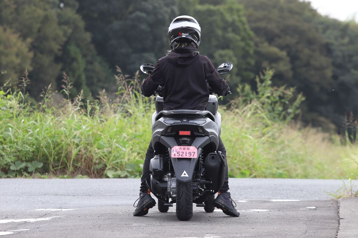 取りまわしではフロント二輪の重量を実感する場面もあった。車重は160 kg台とこれまで乗ってきた二輪と大きく変わらないが、フルロックで車体を押し引きするとフロントの重さで傾けすぎてしまいそうになる。ただ、切り返しを繰り返して小刻みに方向転換すれば問題なく扱えるし、ライダーが乗った状態でのUターンは片側一車線レベルの幅でも難なくこなせた。