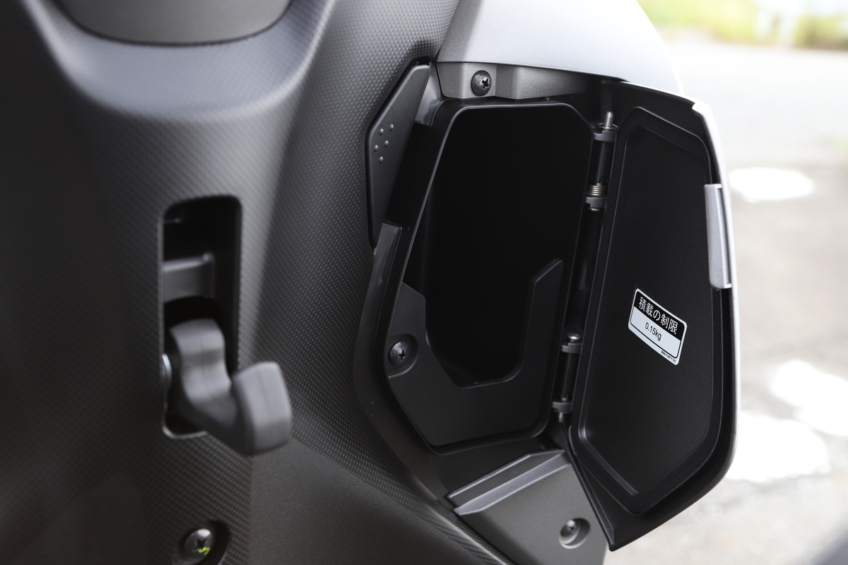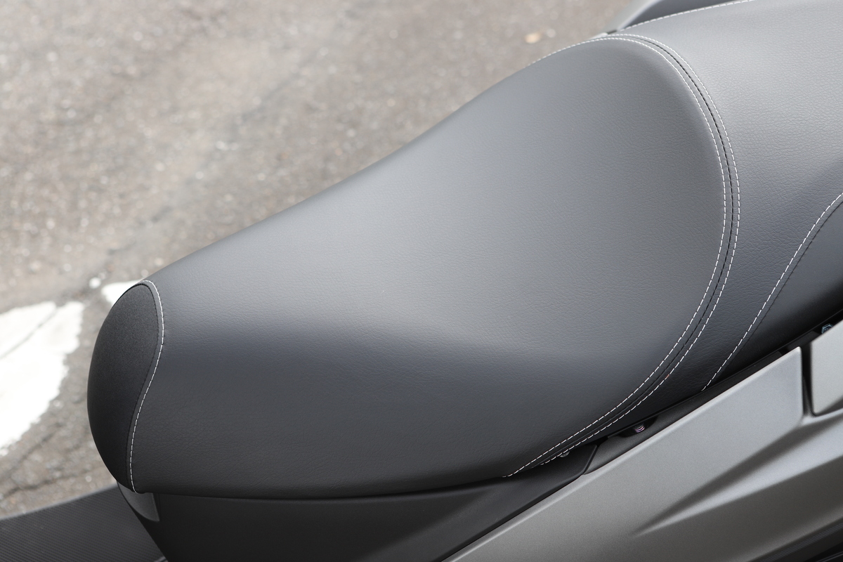 足着きは両足の母指球が接地し、シート幅はやや広いものの足を外側に開く感覚はそれほど気にならない。アクセルを開けずに足の力だけで動かそうとすると力が必要だが、エンジンを使えば取りまわしに不安はない。身長155cm/体重46㎏