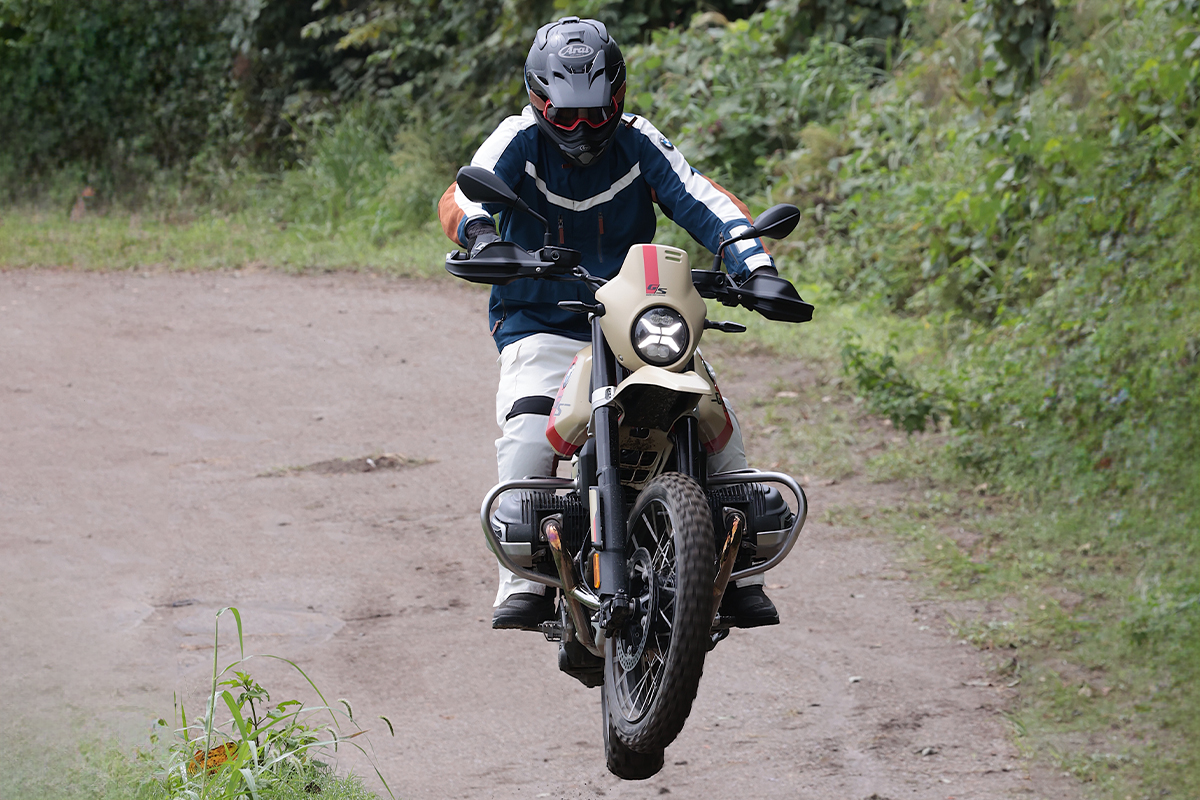 G/Sの名は1980年に登場したGSの初号機、R80G/Sに採用された「スラッシュ」が入るネーミング。2025年にリリースされた新機種で、空冷水平対向2気筒エンジンを搭載。最新水冷水平対向2気筒エンジンとは異なり後方吸気、前方排気を採用。シンプルで上質なデザインや鋼管フレームが特徴。以前ラインナップされたスクランブラーモデルはロードバイクベースだったが、R12 G/Sはスタンダードがフロント21インチ+リヤ17インチホイールを採用。今回試乗したモデルはオフロード走破性を高めたGS SPORT仕様。フロント21インチ+リヤ18インチホイールで、エンジン下部と地面の間に25㎝もの空間を確保。不整地でも亀の子になりにくいレイアウトが特徴。この足長スタイルを好むライダー、GSよりも近距離のツーリングが好き、というライダーに向けた一台で、ストリートやオーセンティックなファッションにもマッチングのいい一台だ。