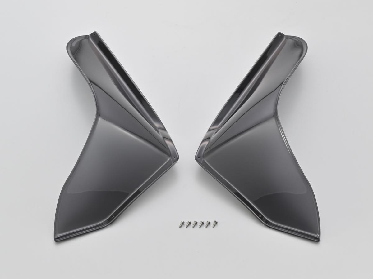 2025年式のPCX & PCX160用のエアロフォルムのサイドバイザーがデイトナより発売中だ。色はスモークとマットブラックの2種類がラインナップされていて、スモークは2㎜厚の耐衝撃アクリル製でマットブラックは2mm厚のABSとなる。両面テープとタッピングビスだけで簡単に取り付けられて、いずれも左右セットで1万4,850円となる。