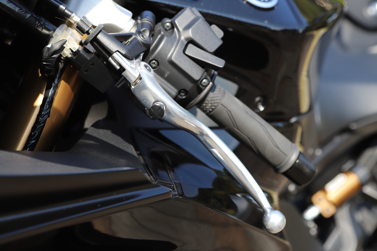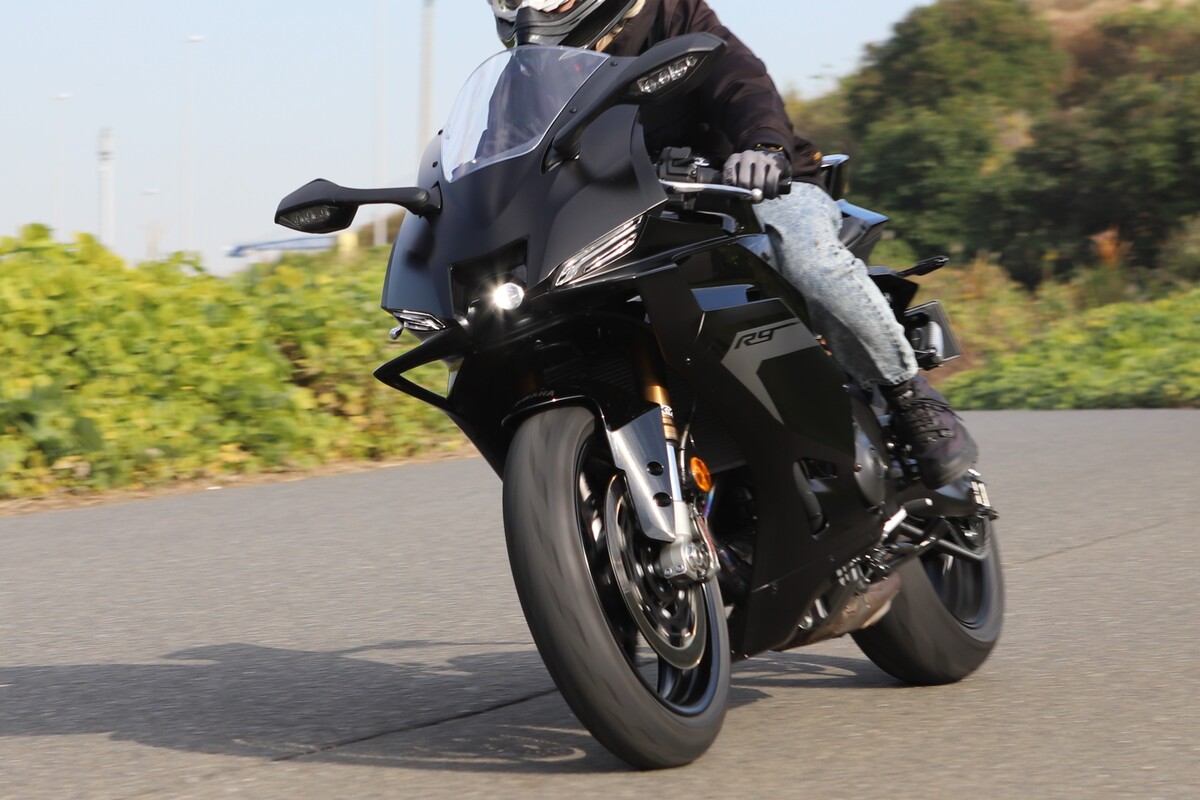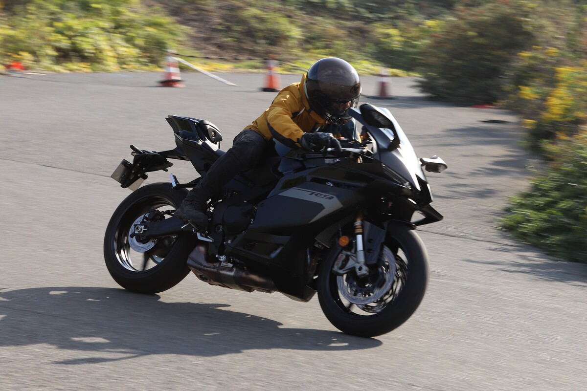 スーパースポーツ特有の前傾姿勢に身構えていたが、実際は上体が前に倒れすぎずハンドルまでの距離も遠くない。YZF‑R6よりハンドルが高く近く、フットペグも低めに設定されているため 、攻めた姿勢ながら必要以上に窮屈ではなく、腕が伸び切る感じもなかった 。クラッチレバーには調整機能があり、初期設定では手の小さな自分には遠く感じたが、調整後はちょうどよい位置になり操作しやすくなった。シート高830mmは片足を下ろして母指球が接地する程度。R1やR6より足つきが良く、R7と同じくらいの足つきだ。車体重量も数値ほど重く感じず、初めて大型バイクに乗るとき特有の緊張感が薄れた。半クラッチでの低速走行も安定しているため、取り回しやUターンで心に余裕を持てた。