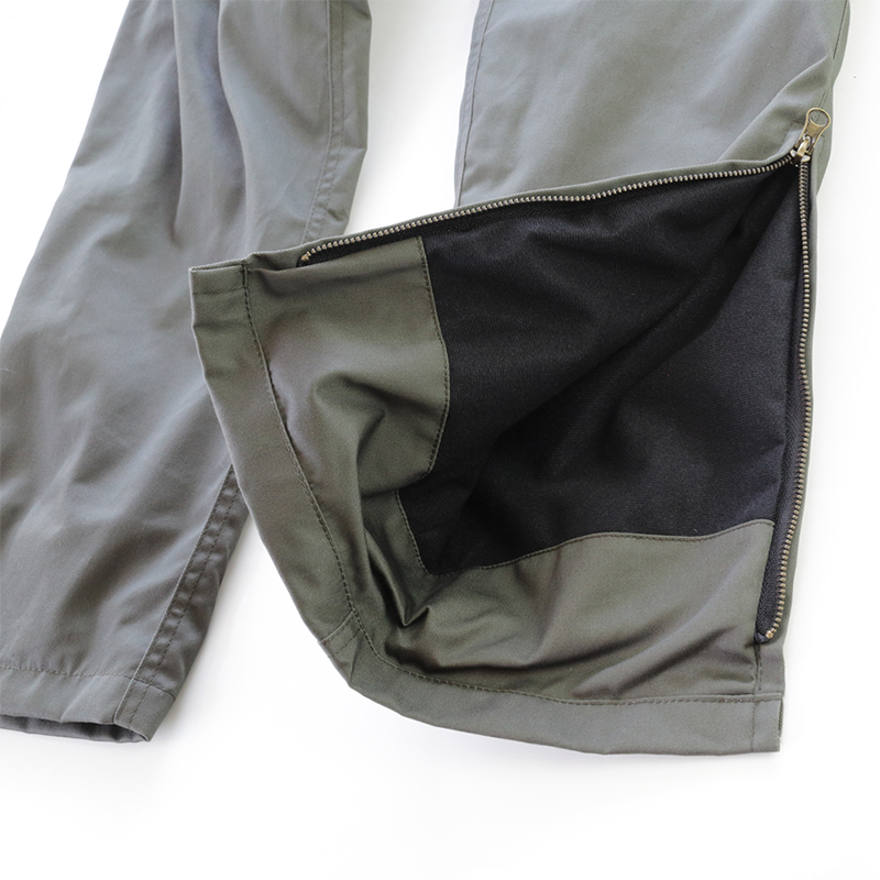 シルエットは、腰まわりに余裕を持たせたテーパード型。ウエストはぐるりとゴム入りで、リラックスできる“家着感覚”のまま、防風・防寒性能をしっかり確保。さらにバイク乗りが欲しいポイント、やや長めのレングスやブーツと相性のいい裾ファスナー、大きめの尻ポケットを全部盛り。冷え込む朝の通勤から冬ツーリングまで、体を冷やさない作り込みになっている。