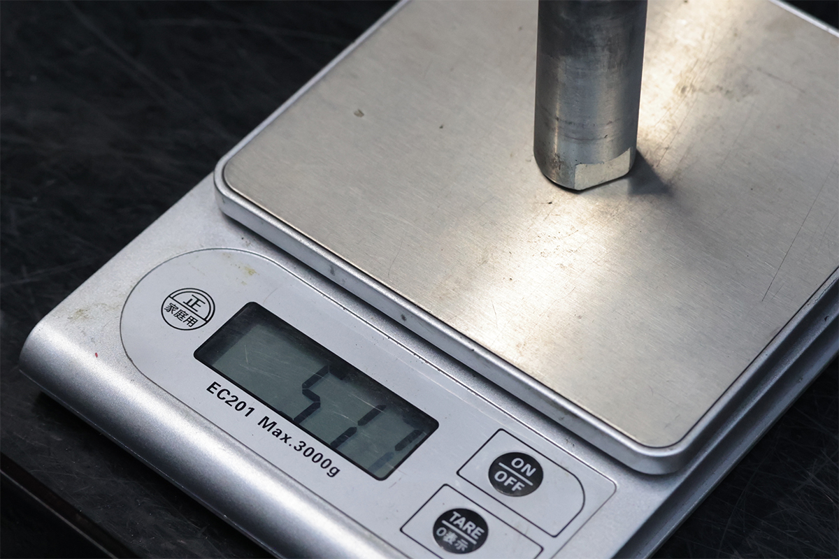 純正アクスルシャフトとZERO POINT SHAFTの違いの一つが『精度』だ。ZERO POINT SHAFTは1/1000㎜単位で作り込んでいく。1/1000㎜で純正アクスルシャフトを見てみると、真円ではなく、円筒度も低い。バイクのホイールは、アクスルシャフトを軸にして回転する。このアクスルシャフトが歪んでいたら『回転が安定しない』ということは、なんとなくでも想像できるだろう。ホイールがブレながら回転していれば悪い影響が出る。ZERO POINT SHAFTはほぼ完璧な真円・円筒形状になっているのでブレない。そのため、プラスの効果が出るわけだ。ちなみに、純正アクスルシャフトも一定の水準を満たし、性能的には問題ない。製造コストなどの面から、ある意味妥協せざるを得ない部分もあるのだ。