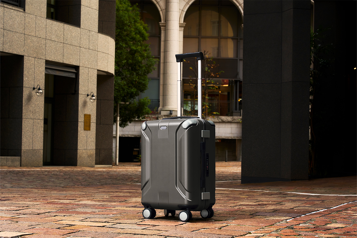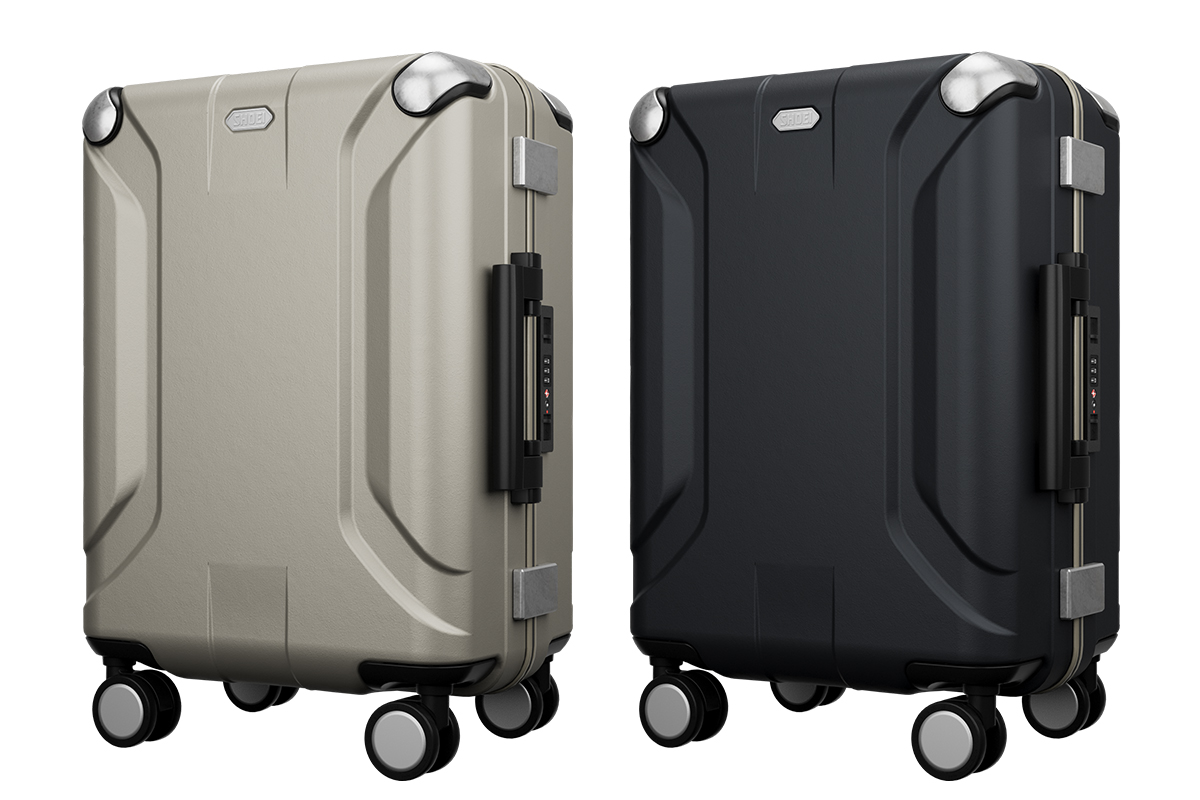 X-COREは、SHOEIのヘルメットと同様のGFRP(ガラス繊維強化プラスチック)を採用し、高い耐久性とデザイン性を両立した機内持ち込みサイズのキャリーケース。荷物を守るという意味でも、ビジネスや旅行と幅広いシーンで活用できるだろう。