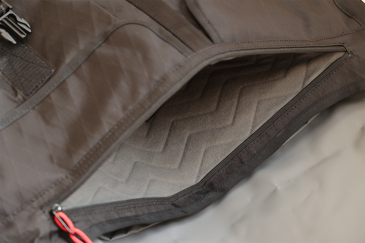 24Lという容量があるからこそ、細かな収納も重要になる。CTZメッセンジャーバッグには、すぐに取り出したいスマートフォンや小物を収納できるポケットを二つ配置。フラップはマグネット固定式で、グローブをしたままでも扱いやすい。
