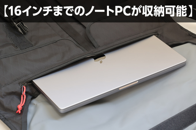 メイン気室とは別に、16インチまでのノートPC専用収納部を装備。クッション性の高い素材を採用し、移動中の衝撃からデバイスを保護する。ツーリングだけでなく、通勤や出張などビジネスシーンにも自然に溶け込む点は大きな魅力だ。