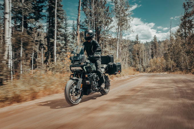 これらがすべて標準装備され、長距離でも疲れにくい。さらにSW-MOTECHと共同開発したアルミ防水パニアは、合計120Lという圧倒的な積載力を誇る。オンロードも未舗装路もこなせる万能性は「ハーレーでどこまで行けるのか?」という問いに、はっきりと答えてくれるだろう。