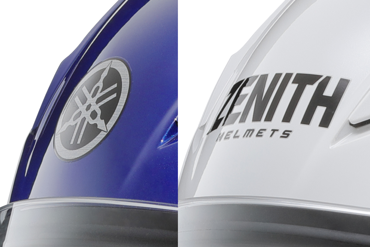 デザイン面での大きな変更点が、ヘッドマークを2種類から選べるようになったこと。従来からの 『ZENITH』ロゴとヤマハの象徴である『音叉マーク』で、カラーによって分けられている。さり気ない違いだが、車両やウエアとのコーディネートを楽しめるポイントだ。