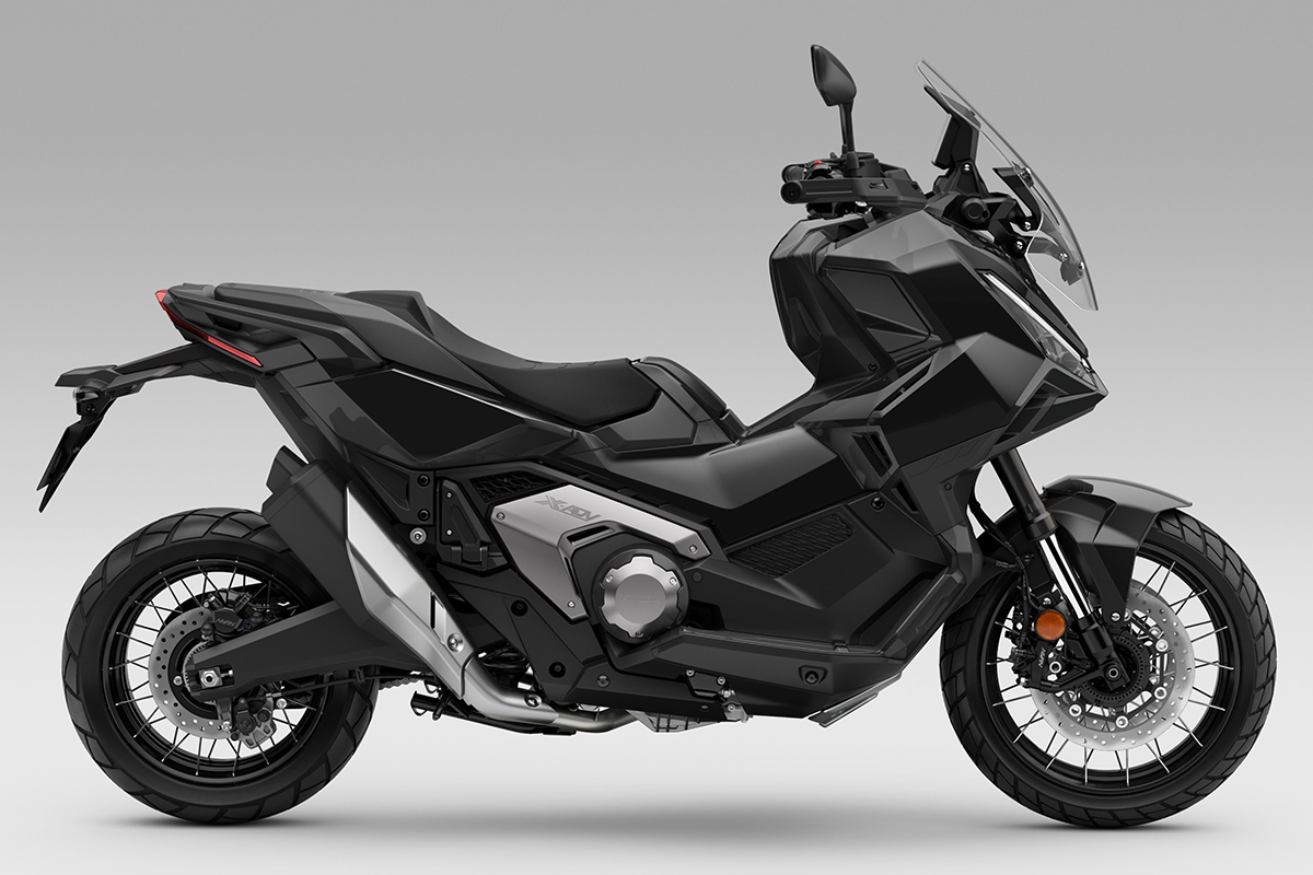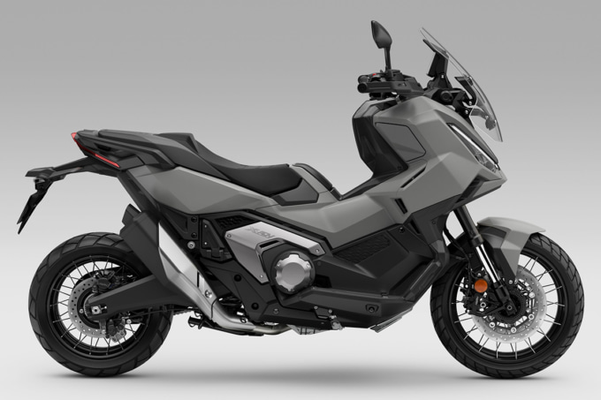 一方「グラファイトブラック」と「マットディープマッドグレー」は精悍で引き締まった印象。フロントフォークとスイングアームをブラックで統一することで、X-ADVらしいタフさとスタイリッシュさを強調した仕上がりだ。