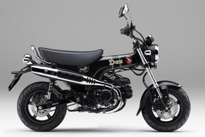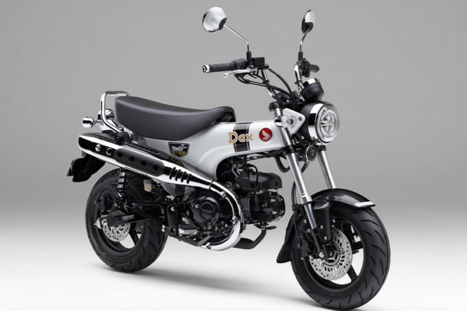 今回新たに設定されたのは、上質感のある『パールホライゾンホワイト』。柔らかな光沢をまとったホワイトは、ダックスのクラシカルなフォルムと好相性で、街中でも自然と視線を集める仕上がりだ。継続色の『パールシャイニングブラック』も、フロントフェンダーなどの配色を変更。全2色とも車体側面ロゴにゴールドをあしらい、さりげない高級感を演出している。
