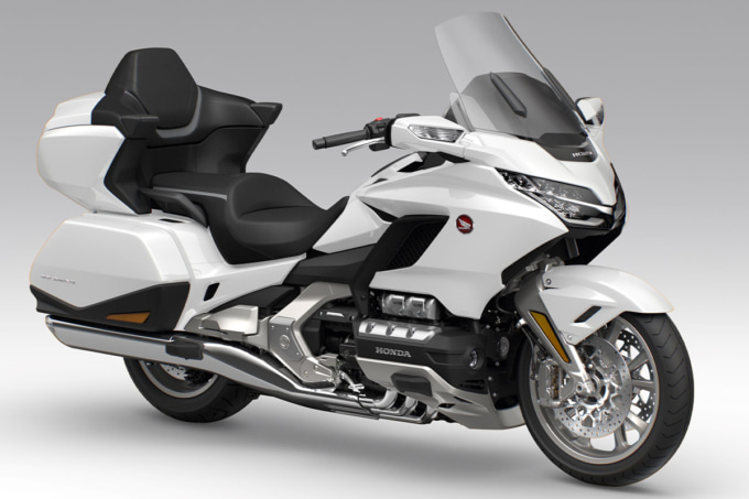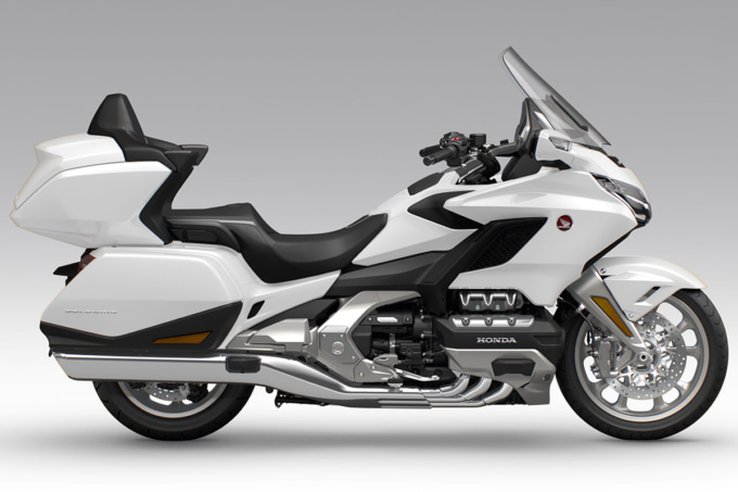 現行モデルへとフルモデルチェンジを果たしたのは2018年。軽量・コンパクト化された水平対向6気筒エンジンを高剛性フレームに搭載し、さらにホンダ独自の二輪車用ダブルウィッシュボーンフロントサスペンションを採用。従来の常識を覆すフロント機構により、圧倒的な安定感と軽快なハンドリングを両立している。