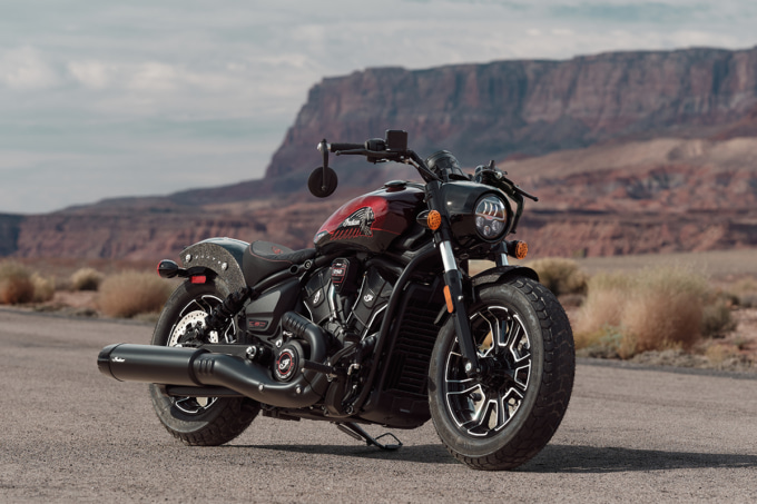 Scout Bobberは、ブランドの中でも最もスポーティな存在。低く構えたボバースタイル、ボブフェンダー、マシン加工ホイールが放つ精悍なシルエットは、若いライダーにも強く刺さる。