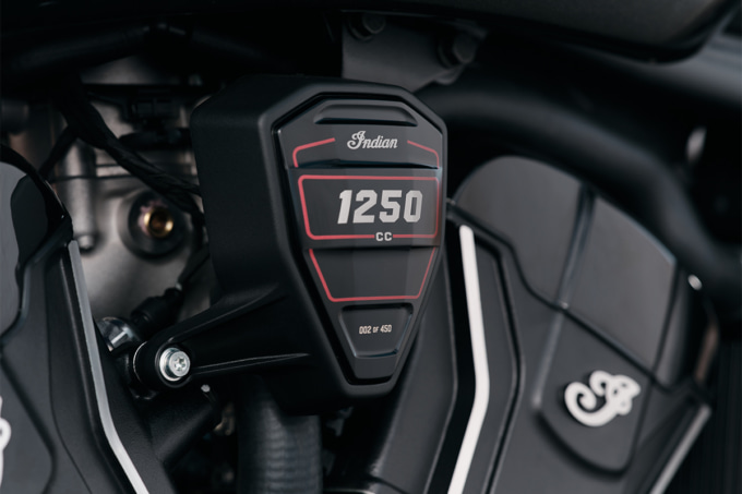 水冷1,250㏄ SpeedPlusエンジンは111馬力を発揮。アメリカンクルーザーの枠を超えた加速性能を持つ。RIDE COMMAND搭載4インチディスプレイやライドモード選択機能など、現代的な電子制御も充実。世界450台、日本20台限定。
