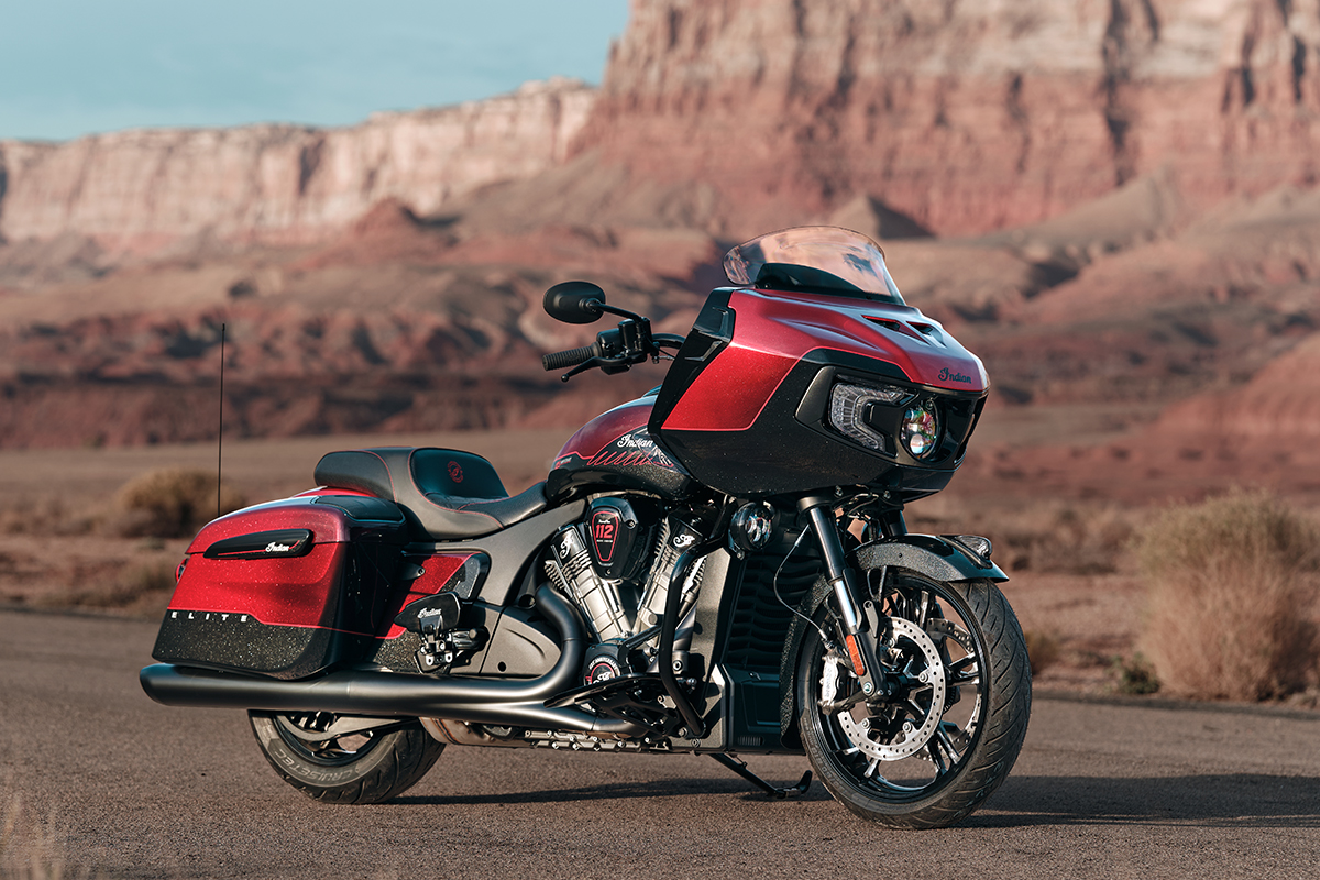 Indian Challengerは、キング・オブ・ザ・バガーズ選手権で実力を証明したモデル。水冷PowerPlus 112エンジンは高回転型で、従来のアメリカンVツインとは一線を画す鋭さを持つ。
