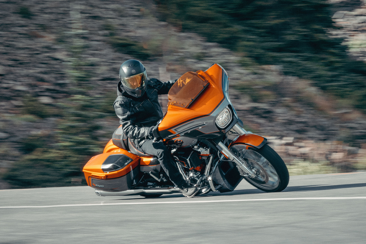 VVT 121を搭載し、特別色“トーチドオレンジ”で登場。ハーレーの王道バガースタイルを、CVOならではの仕上げで昇華したモデルだ。