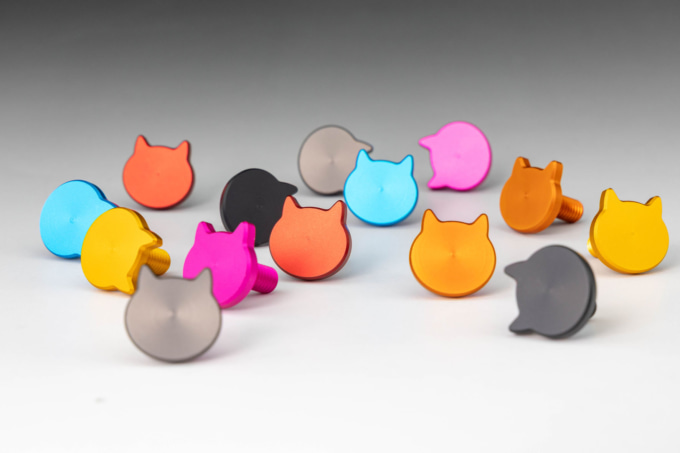 素材にはアルミ削り出しを採用し、アルマイト仕上げによる高い質感を実現。見た目の可愛さだけでなく、精度や品質にもこだわった国内生産のパーツで、公道での使用にも配慮した設計となっている。
