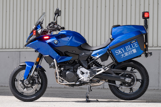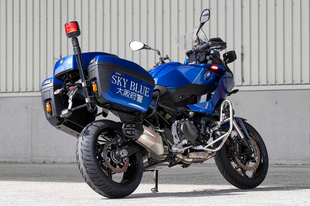 大阪府警察では、ひったくりや車上ねらいなどの街頭犯罪対策として、青い車体が特徴のバイク部隊「スカイブルー隊」が活躍している。今回、その専用パトロールバイクとしてBMWのF 900 XRが新たに導入された。
