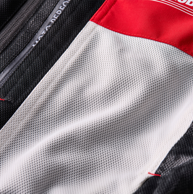このジャケットはメッシュ生地を採用しており、走行中は風がしっかり通る。春から夏にかけてのツーリングでもムレにくく「バイク用ジャケットって暑そう…」という不安を払拭してくれる仕様だ。