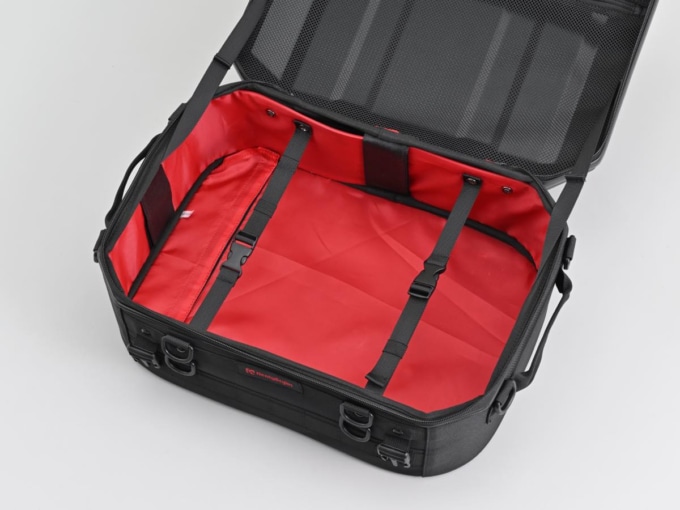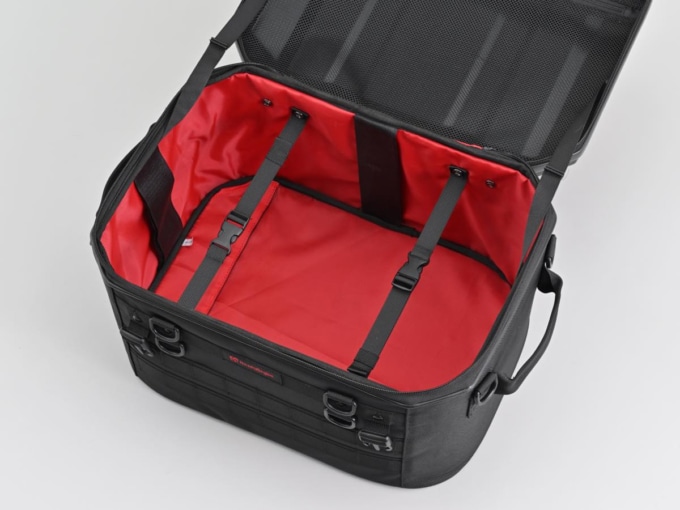●トップシェルタイプ:ブラック、カーボン、シボ入りブラック ●サイズ:H300×W530×D320(㎜) ●容量:45L ●本体重量(付属品込):3.0㎏ ●素材:ポリカーボネート(トップシェル) ●付属品:イージーリングベルト、レインカバー、ショルダーベルト ●価格:3万3,000円(ブラック)、3万4,100円(カーボン)、3万4,100円(シボ入りブラック)
