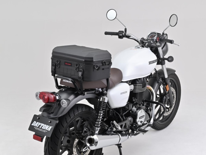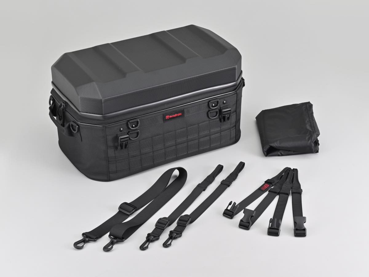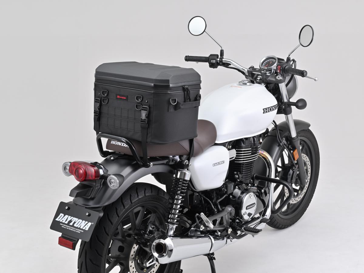 ツーリング時や街中の移動で荷物を積みたいけれど、“トップケースやパニアケースはステーも装着しなきゃならないからちょっと…”と思っている人は少なくないだろう。そんなライダーにオススメしたいのが、デイトナが販売しているヘンリービギンズブランドのシェルシートバッグだ。バッグ部分は頑丈な芯材や変形防止の連結ベルトなどで空荷でも形状が維持でき、ポリカーボネート製トップシェルは、バッグに入りきらなかった荷物を載せやすい。また、タンデムシートを挟んでバッグを簡単・確実・スマートに固定できるイージーリングベルト仕様なので、使わない時はすぐに車体から取り外せる使い勝手のよさも◎。加えてパルステープを使用して別売のポーチが装着可能と拡張性もあるのだ。25、35、45Lと愛車の大きさや使い方に合わせてサイズも選べるぞ。