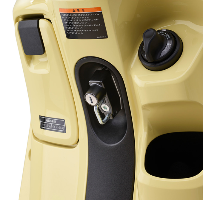 駐輪時の利便性を高める必須アイテム。シート下に荷物を入れると、ヘルメットの置き場に困ることも。そんなときスマートに固定できるため、日常使いのストレスを軽減する。シンプルな構造ながら、防犯面でも安心感をプラスしてくれる実用性重視のパーツだ