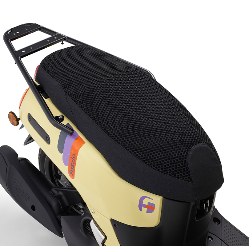 通気性にすぐれたメッシュ素材を採用し、夏場の不快な蒸れや熱のこもりを軽減する快適性重視のアイテム。直射日光で熱くなりがちなシート表面の温度上昇も抑え、乗り出し時のストレスを軽減する。日常使いの頻度が高いファツィオだからこそ、その効果を実感しやすいのがポイントだ